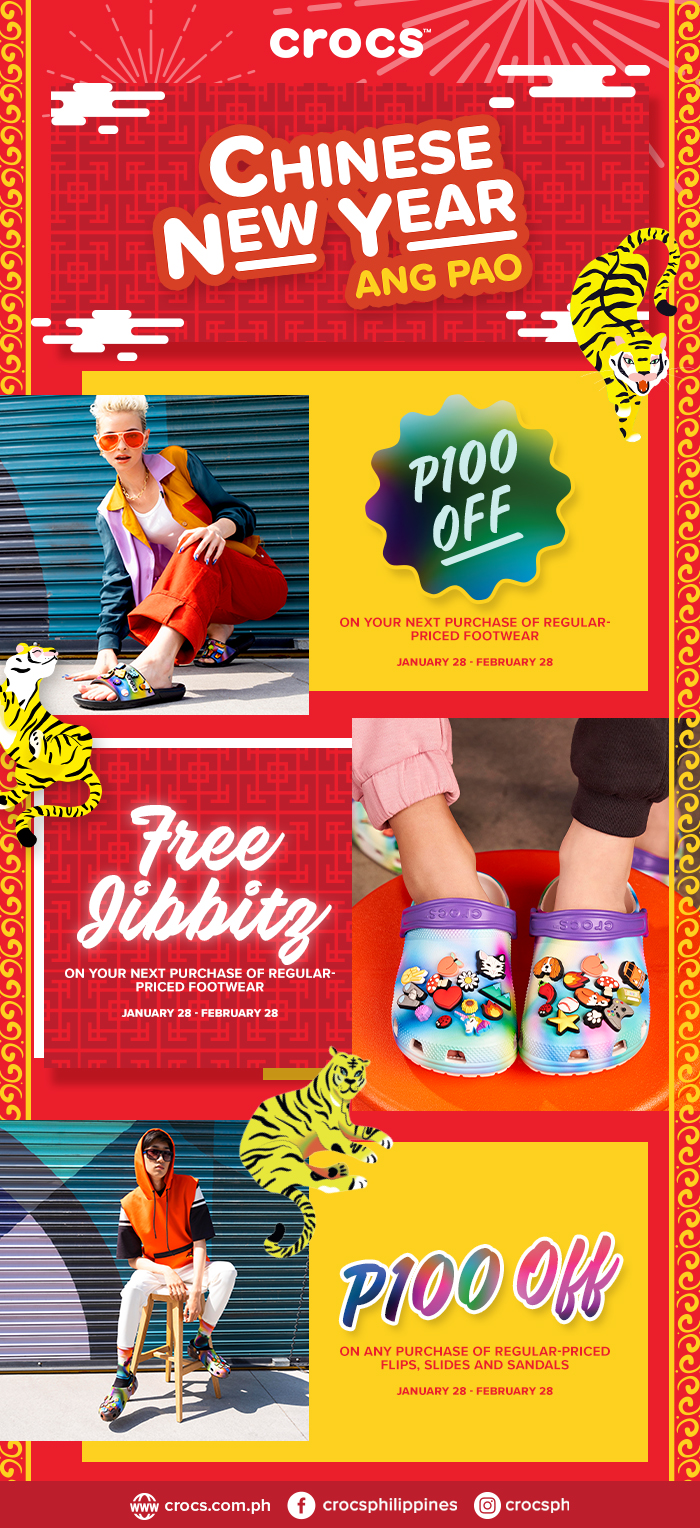 Crocs, a global leading brand for innovative casual footwear is welcoming the new Water Tiger Year with exciting Ang Paos that you can get starting January 28 until February 28 for every regular-priced Crocs footwear purchased at any Crocs stores nationwide or when you buy at Crocs webstore (www.crocs.com.ph).