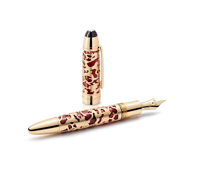 It is often said that the Great Wall twists and turns across China like a gigantic dragon, protecting the country just as an emperor would protect his empire. Symbolic of the way the wall winds protectively around China, the Au750 solid yellow gold skeleton overlay coils dragon-like around the Meisterstück 149 fountain pen, decorated with nine dragon motifs, a good number in Chinese culture and strongly associated with the Chinese dragon, a symbol of magic and power.