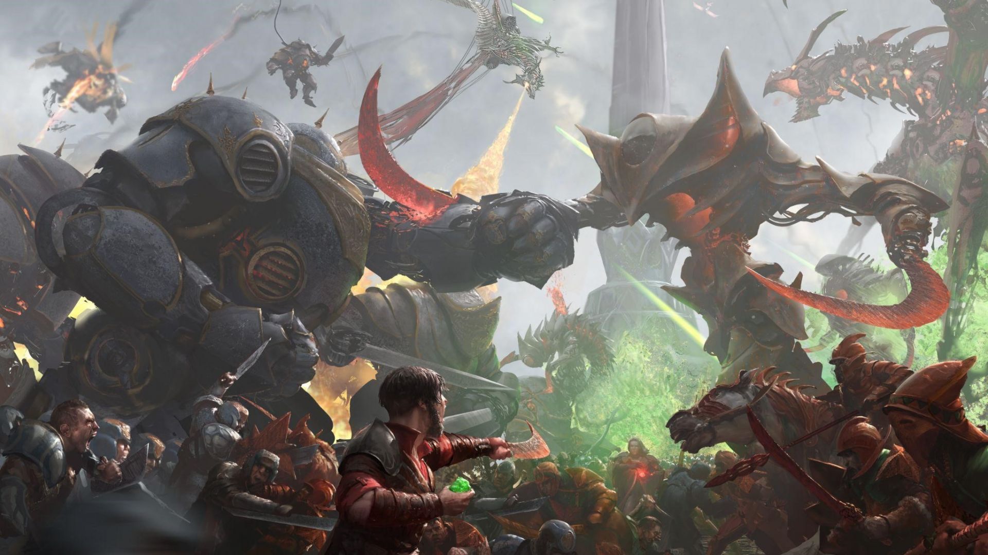 10 full-art basic lands convey a story of their own, showcasing the colossal locations and mechanical behemoths that fought underneath Urza and Mishra during the war.